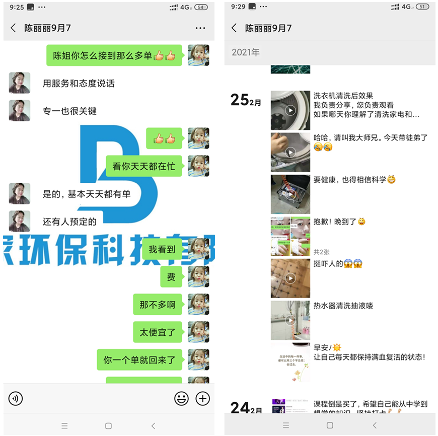 之后麗姐還接到了小區的清洗單子,除此之后麗姐還表示她現在基本上天天都有單子,還有一些事別人預定的。說到怎么一下就能接這么多單,麗姐表示用服務和態度說話是重點,當然專一也是非常關鍵的,因為麗姐想把這件事做好,所以在麗姐給客戶清洗的過程中客戶也能感受到麗姐的態度和專業,久而久之就會積累越來越多的好評,就招來了越來越多的客戶。